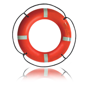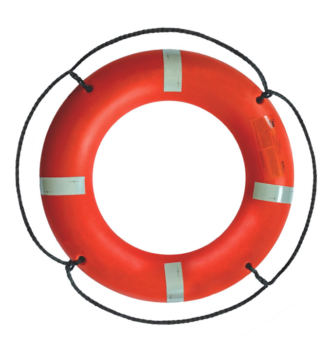 Dispositivo flotante Aro salvavidas de 30" color naranja, cuenta con certificado NOM, provisto de una guirnalda, fabricado con materiales que mantengan su propia flotabilidad, llevar colocada de manera equidistante en forma de cinturón o en ambos lados del cuerpo del aro salvavidas, en cuatro puntos de la circunferencia del aro, cinta retro-reflejante que cumple con SOLAS.