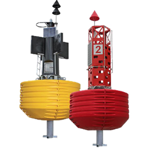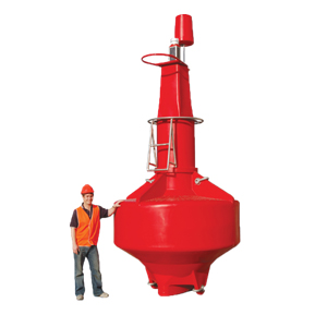 La TRIDENT-2600 es una de las más grandes boyas rotomoldeadas disponible, con un flotador de diámetro de 2,6 metros y una altura focal de la linterna de hasta 5 metros