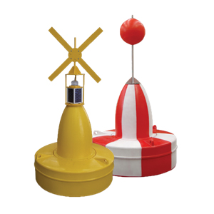 La serie de boyas AQUAFLOAT-800 está disponible en varias configuraciones para adaptarse a los requisitos de la IALA. Están rotomoldeados en polietileno de alta visibilidad estabilizado contra los rayos UV. Las inserciones moldeadas en la sección superior del flotador permiten una cómoda fijación de la linterna, mientras que las boyas están rellenas de espuma de poliuretano de celda cerrada para evitar la entrada de agua en el improbable caso de que se dañen.