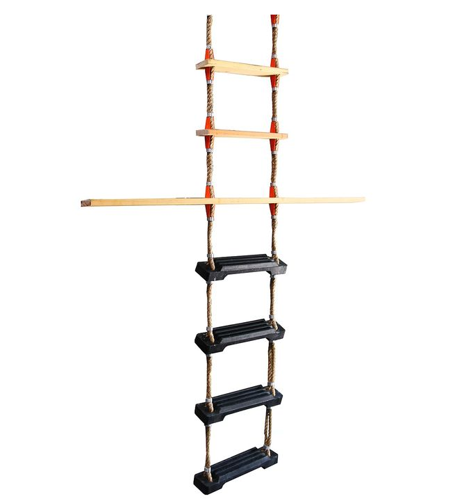 Los peldaños están asegurados con abrazaderas de aluminio.