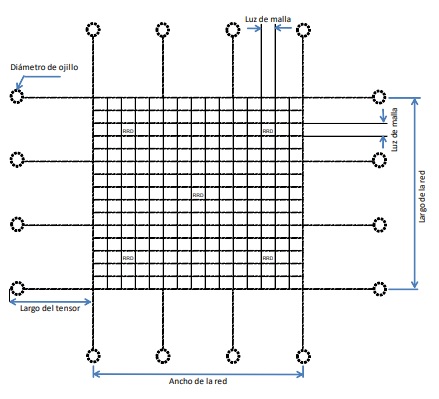 Las redes son elaboradas de material sisal (henequén) preferible de 20 mm de diámetro con una luz de malla de